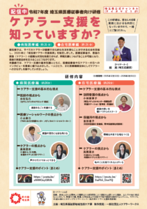 埼玉県福祉部地域包括ケア課より、令和7年度医療従事者向けケアラー支援研修のご案内が届きましたのでお知らせします